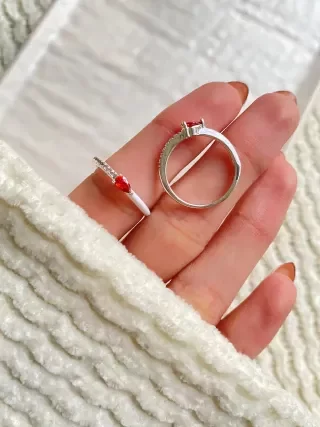 💃 Anillo de acero blanco con cubic rojo y detalles en blanco. Femenino y con un toque de pasión.