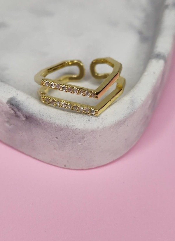 💛 Anillo de acero dorado con doble línea de strass. Sofisticado y brillante, un toque de lujo para tu look.