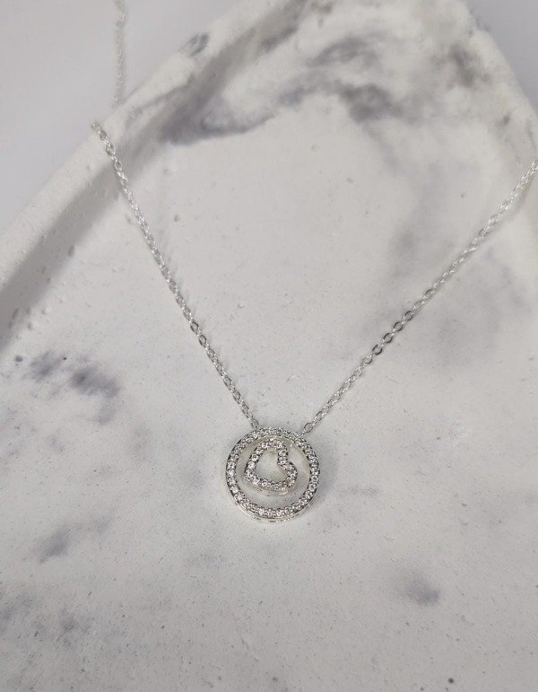 💍 Collar de acero blanco con círculo de strass y corazón al centro. Ideal para quienes aman lo romántico.