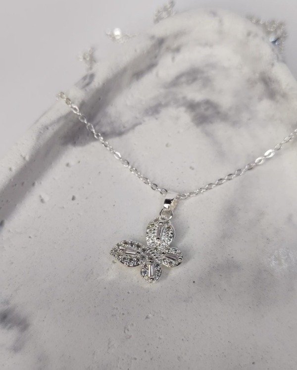 🦋 Collar de acero blanco con mariposa cubic y strass. Femenino, soñador y súper brillante.
