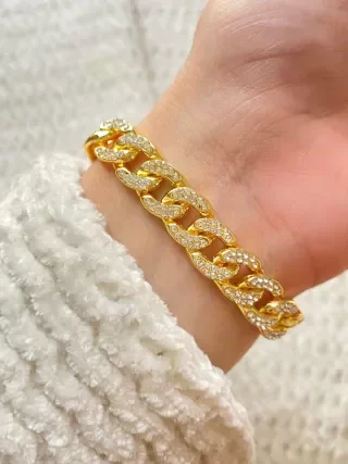 💥 Pulsera de acero dorado con eslabones brillantes. Fuerte, con actitud y mucho estilo.